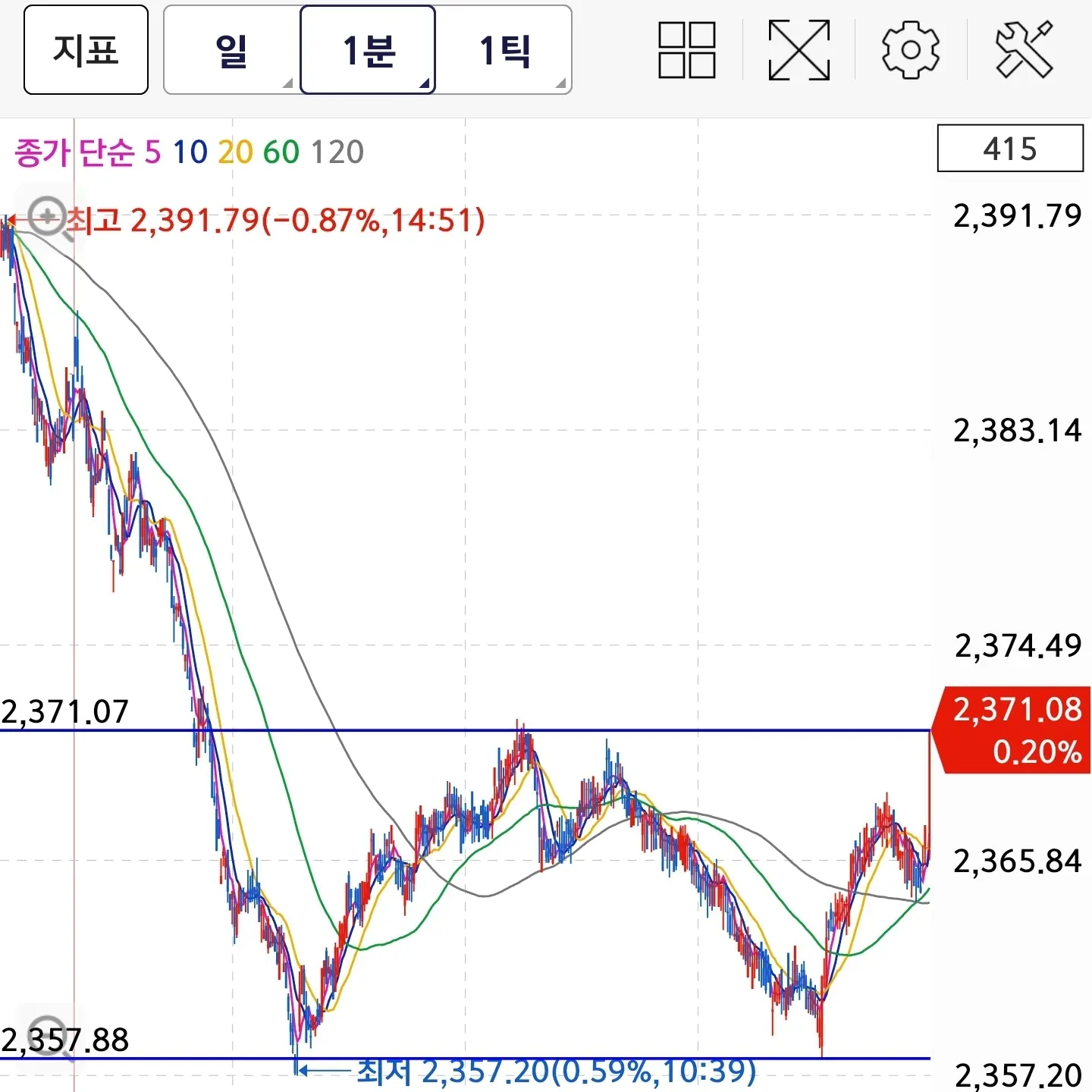 코스피는 장중 10시39분 저점인 2,357P 찍고