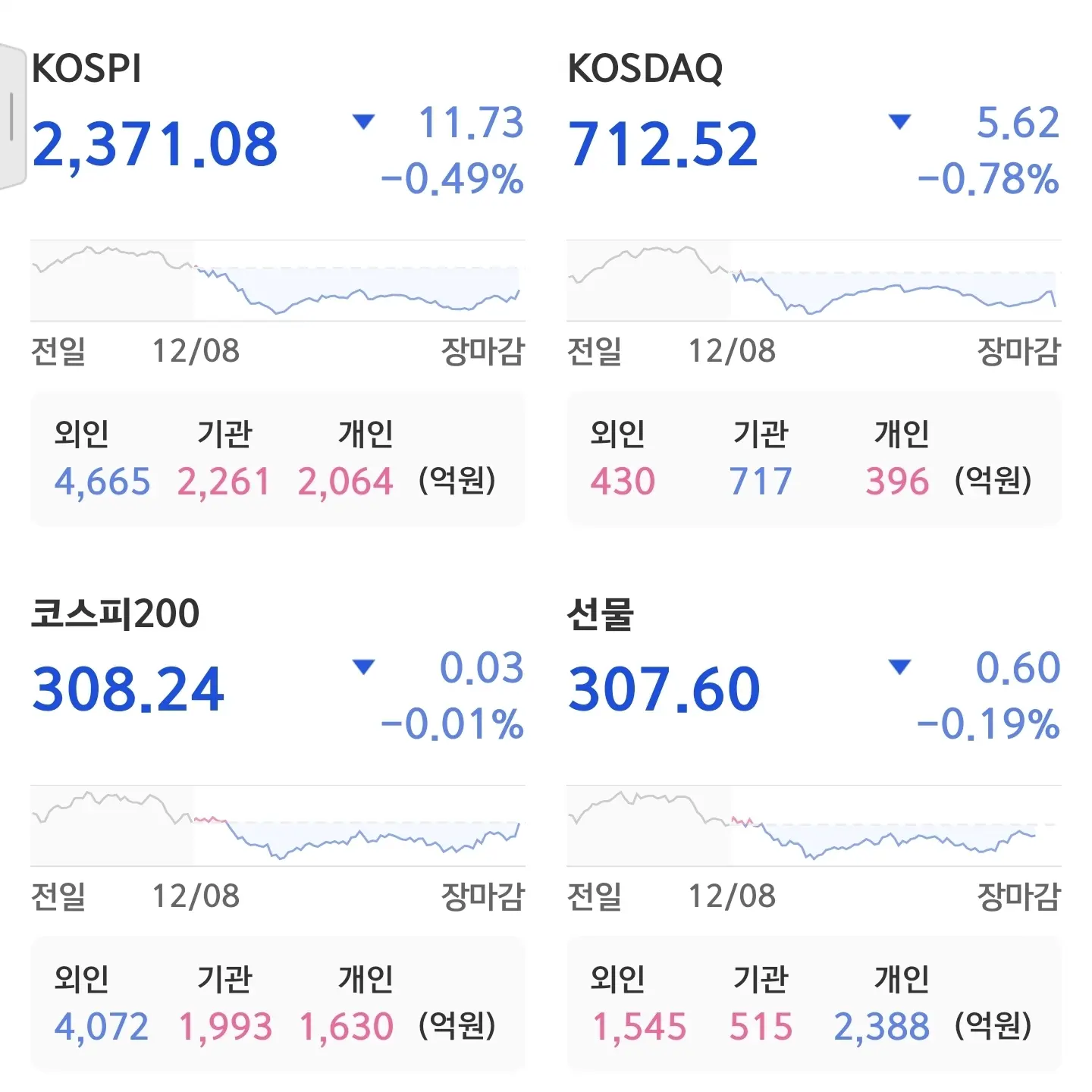 전일 미국시장의 불안감 및 곧있을 12월 FOMC일정으로 인한 그 여파가 국장에도 영향을 주고 있는듯 합니다.