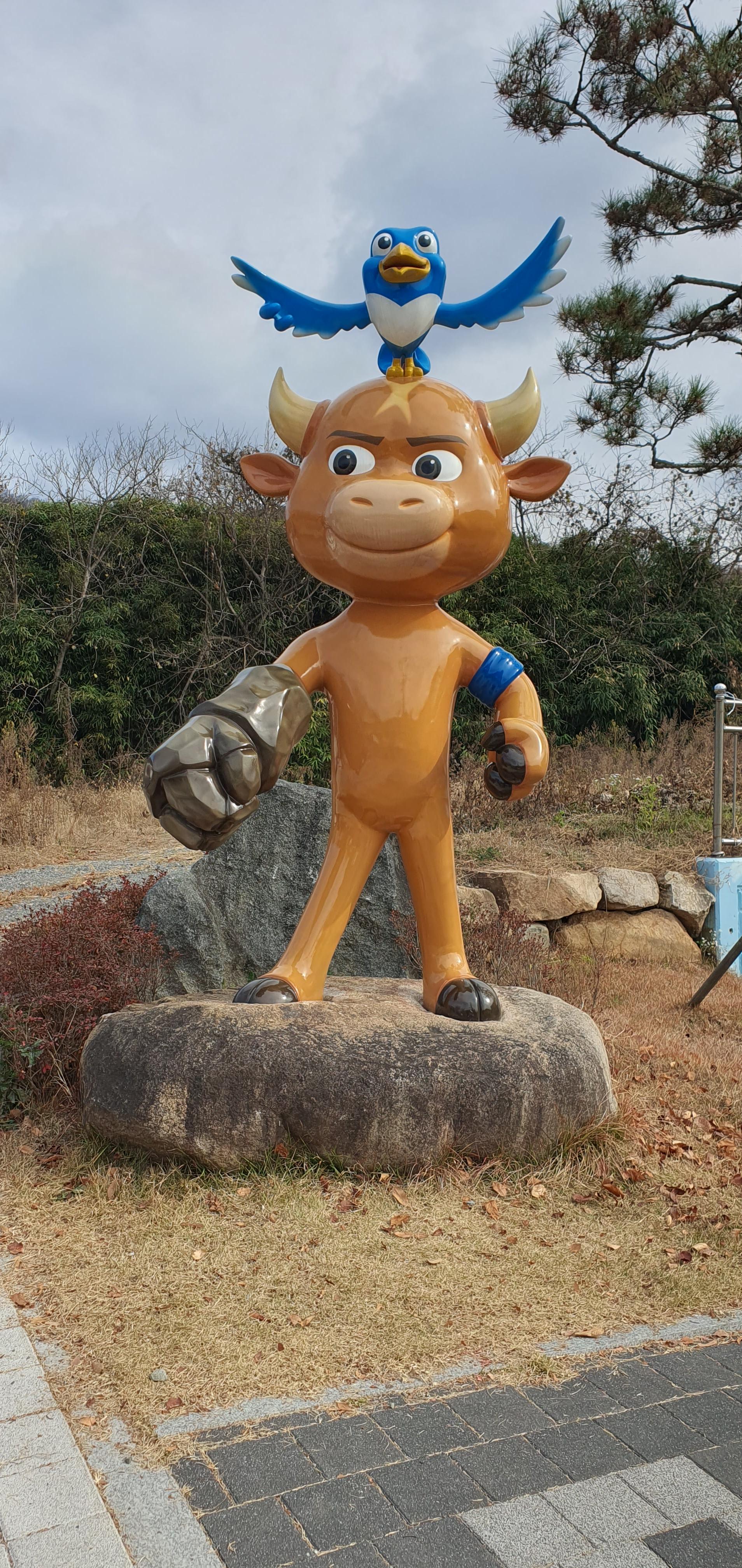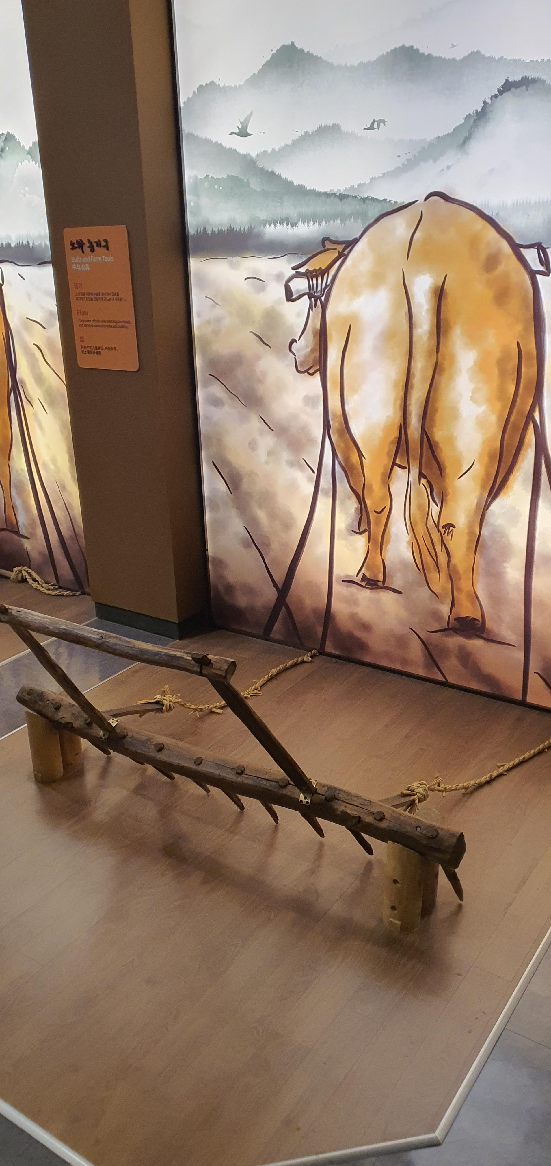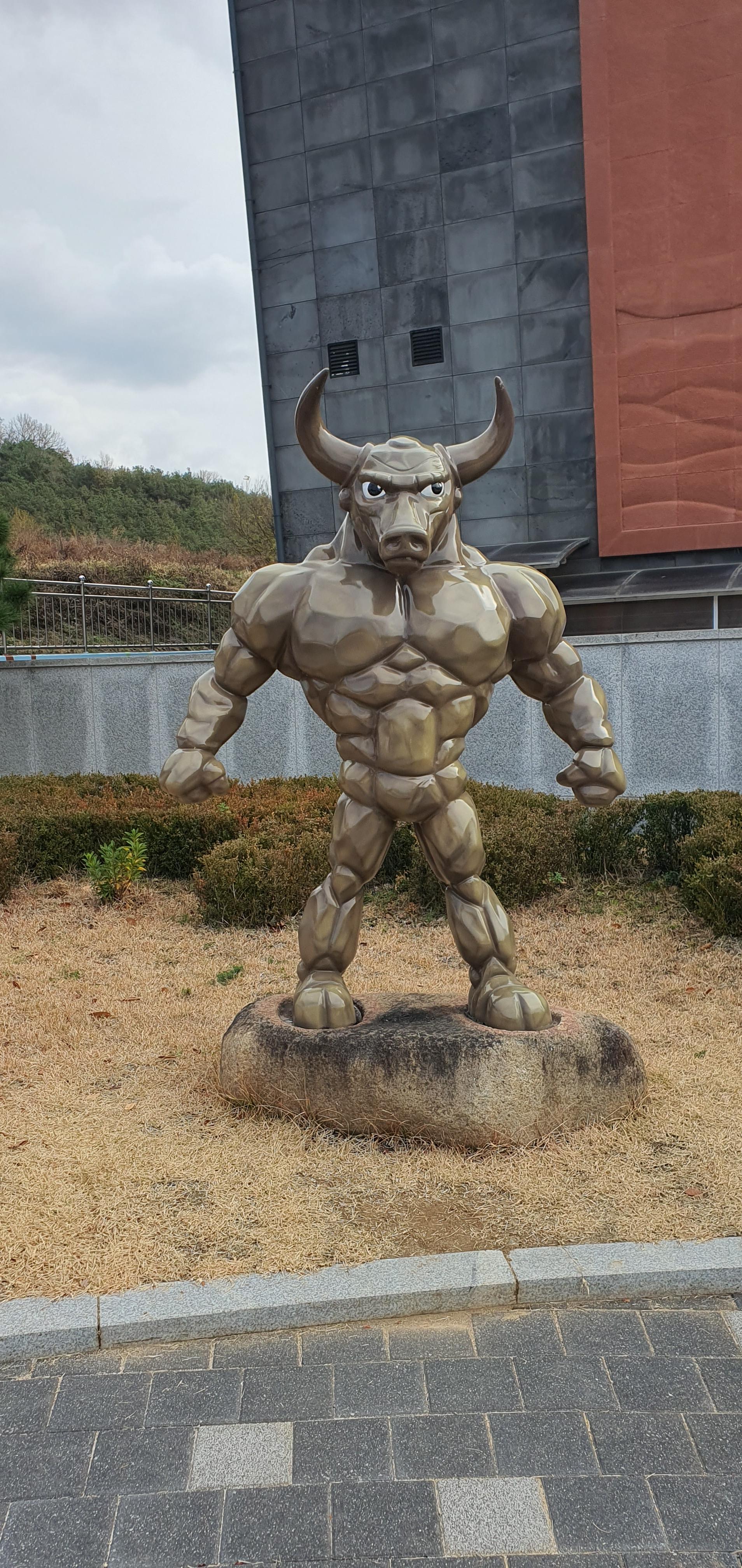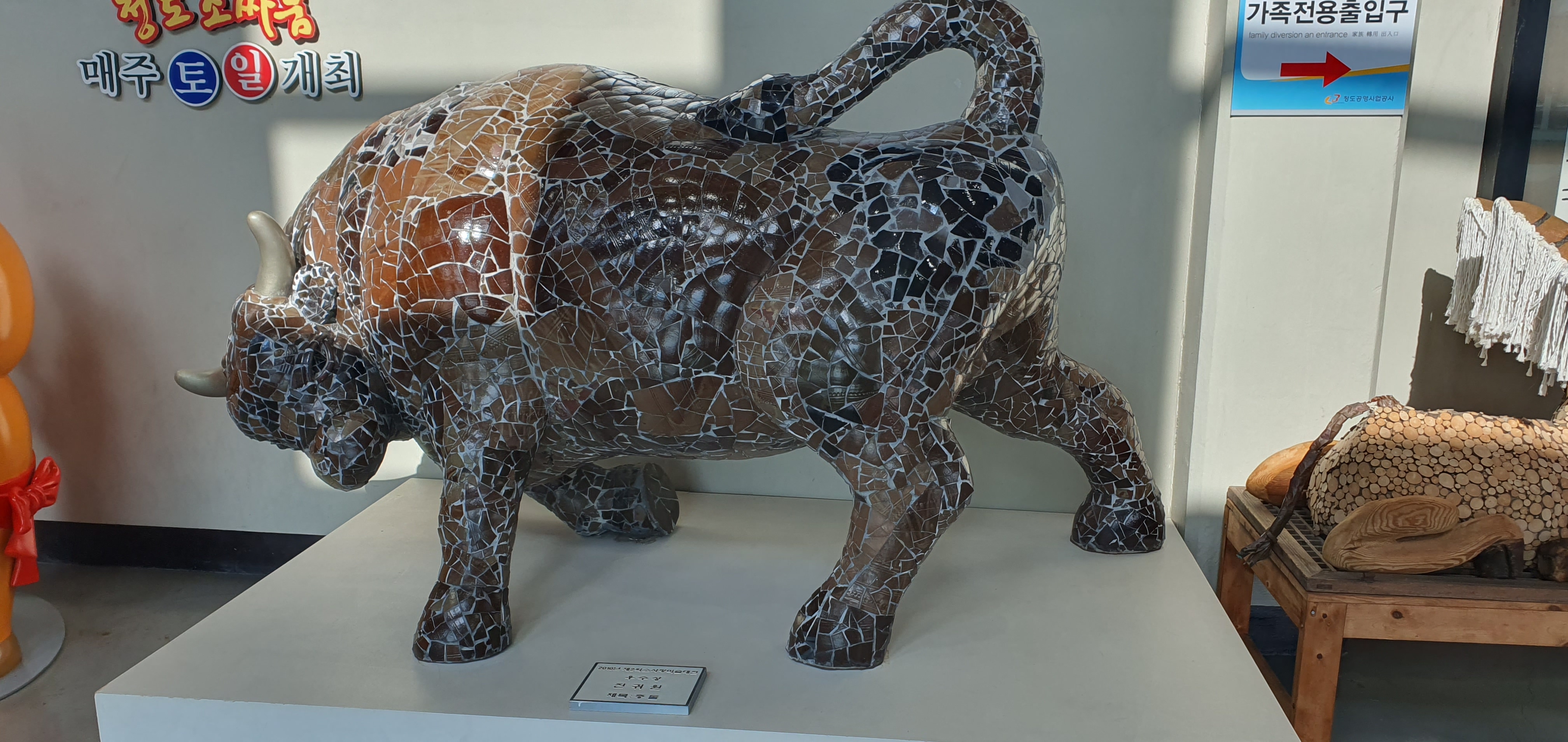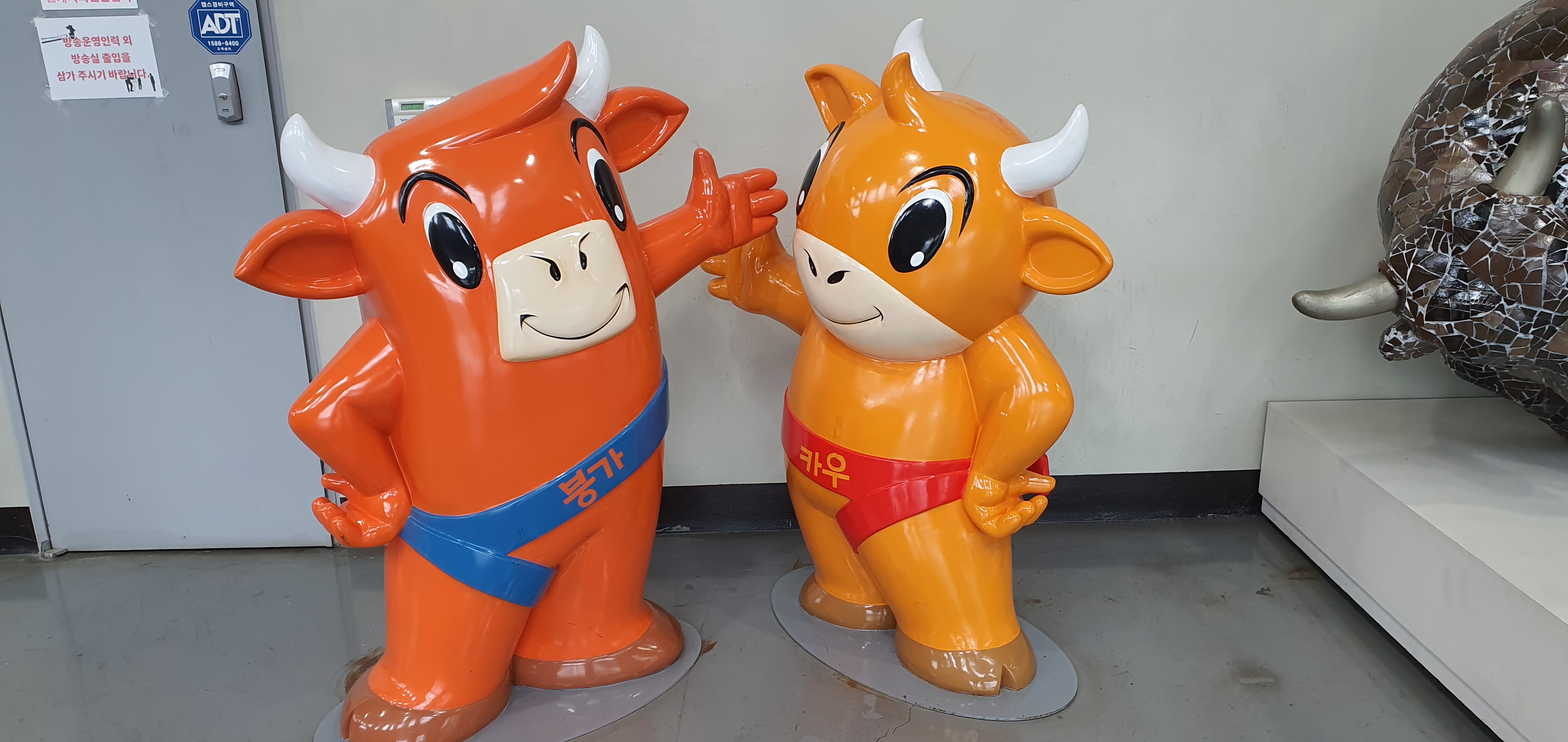 실내에 들어가면 소 에 관한 조형물이 많아요.