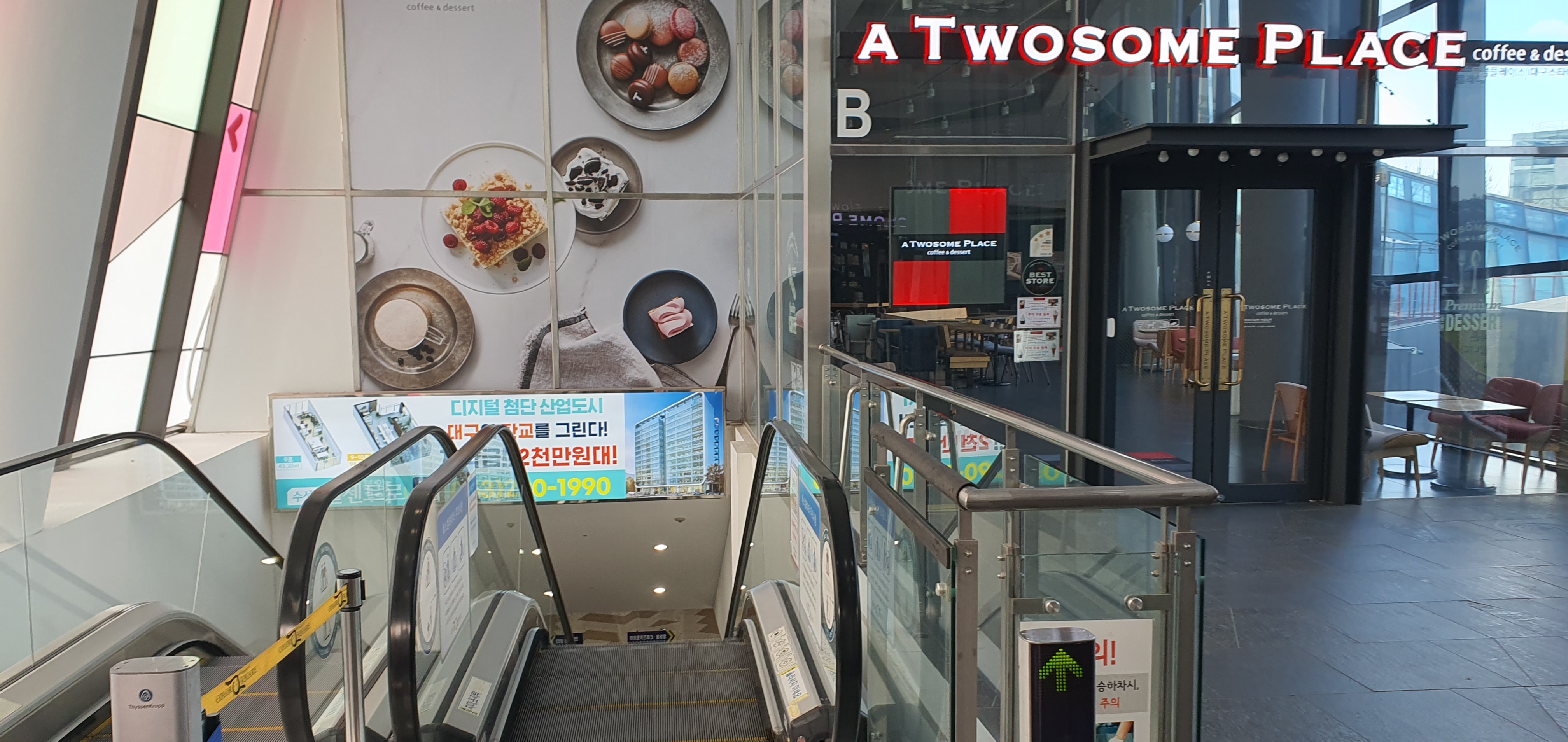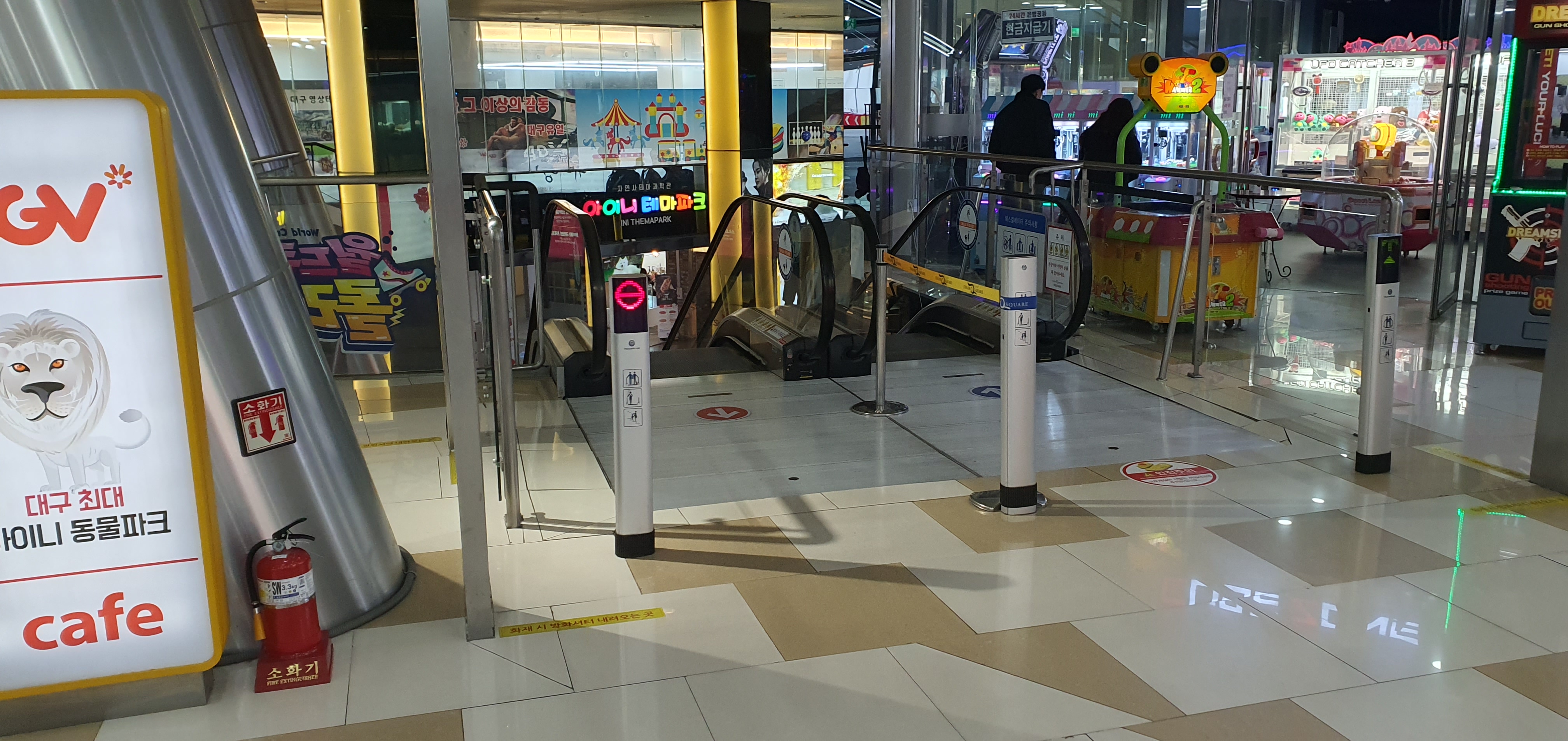탑차 지나 문을 열고 들어가면 왼쪽에 내려가는 에스컬레이터 가 있습니다.