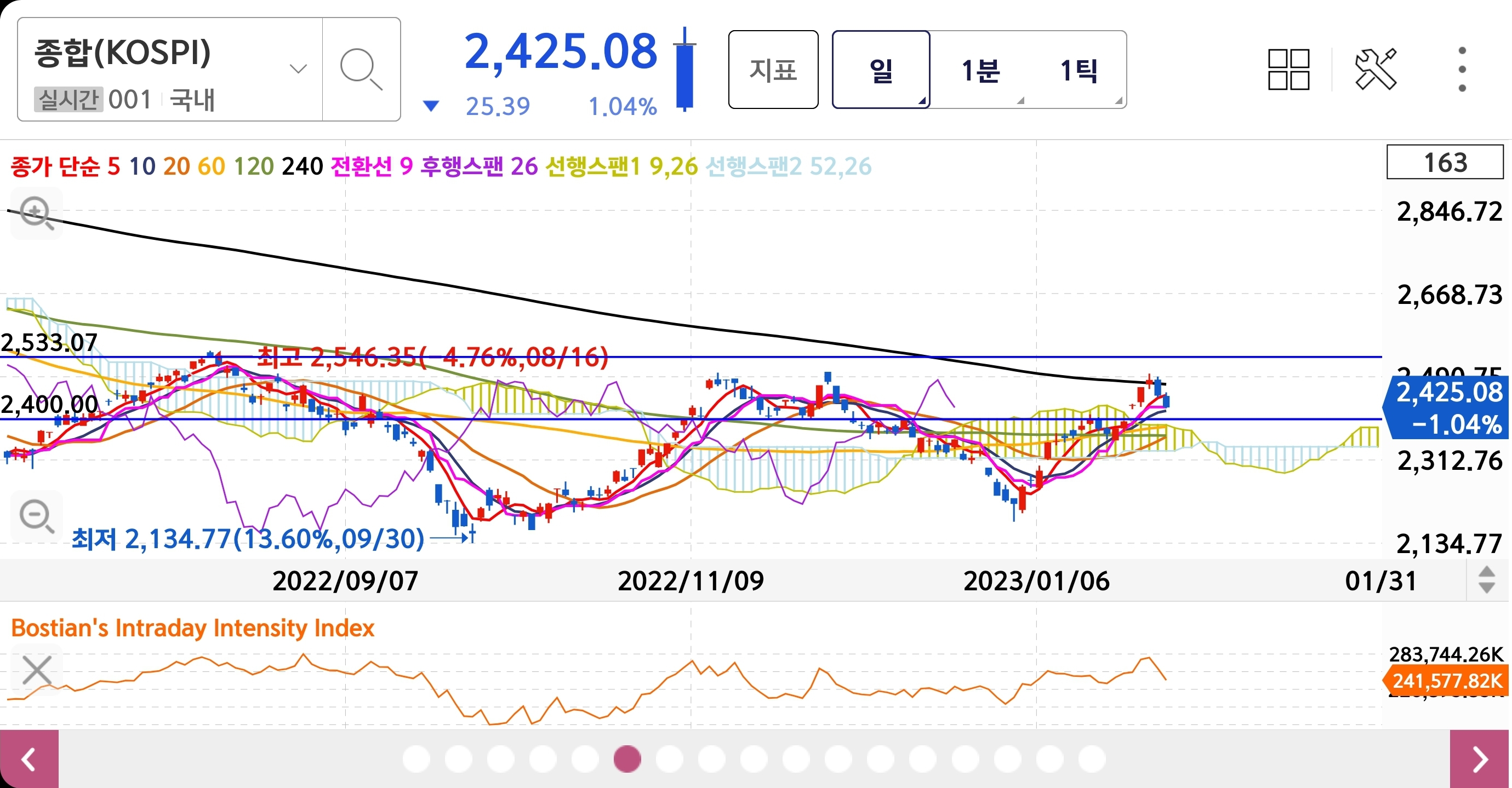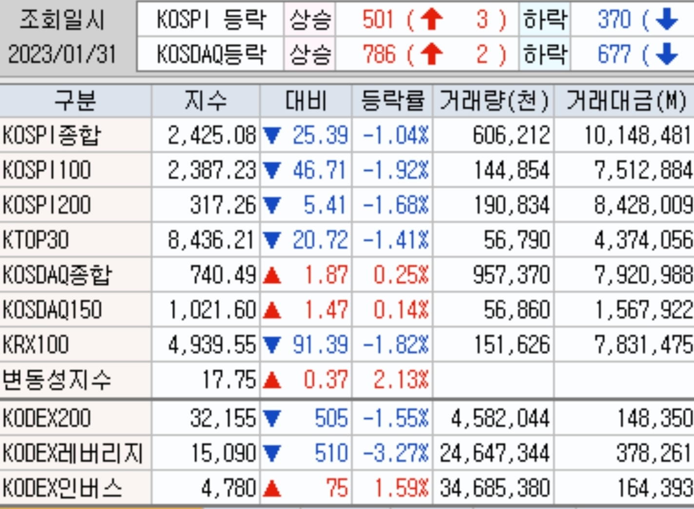 23년 1월 마지막 거래일 월봉 한개가 마감이 된 하루 입니다.