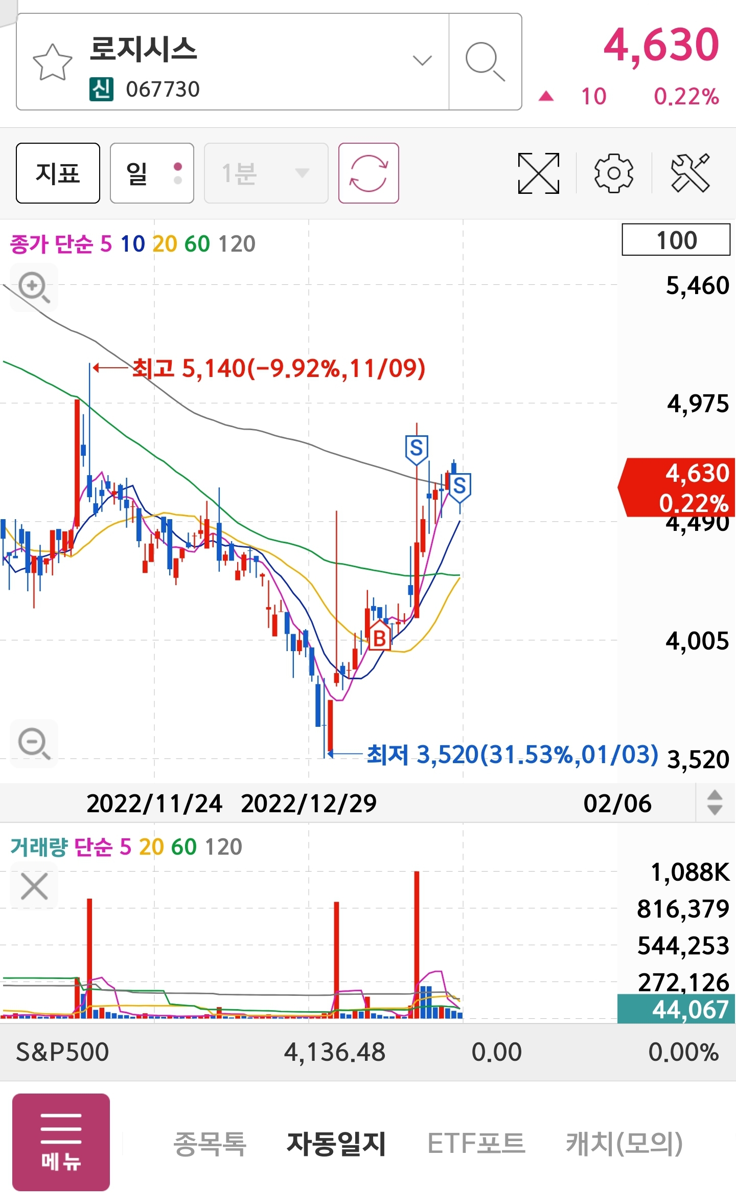 3번 계좌에 있던 로지시스 종목 장중 5일선을 이탈 하길래 바로 남은 물량 전량 매도 하여 11% 익절 하였습니다.